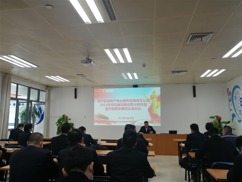 為深入學(xué)習(xí)貫徹黨的二十大及二十屆中央紀(jì)委二次全會會議精神,推進(jìn)公司全面從嚴(yán)治黨和黨風(fēng)廉政建設(shè)工作,增強(qiáng)全體黨員干部的廉潔自律意識,營造風(fēng)清氣正的廉潔過節(jié)氛圍,2023年1月17日南寧軌道地產(chǎn)物業(yè)公司黨支部在東站樞紐培訓(xùn)室召開2023年黨風(fēng)廉政建設(shè)警示教育暨春節(jié)前集體廉潔談話,公司全體黨員、入黨積極分子、中層管理人員共47人參加了此次會議。