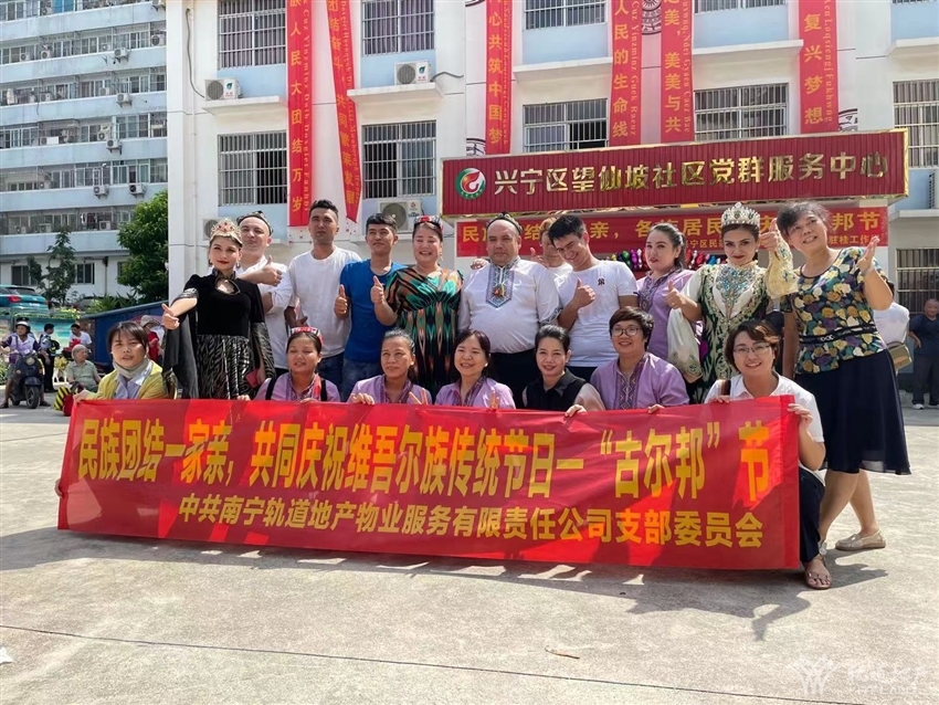 為弘揚民族文化,促進民族團結(jié),鑄牢中華民族共同體意識,結(jié)合中國共產(chǎn)黨成立一百周年的契機,望仙坡社區(qū)、新疆駐桂工作組、興寧區(qū)民宗局于2021年7月15日上午在望仙坡社區(qū)廣場開展古爾邦節(jié)民族文化宣傳活動,軌道地產(chǎn)物業(yè)公司黨支部作為黨建聯(lián)盟單位,受邀參加此次活動,與各族群眾一起共同慶祝維吾爾族傳統(tǒng)節(jié)日--“古爾邦”節(jié)。