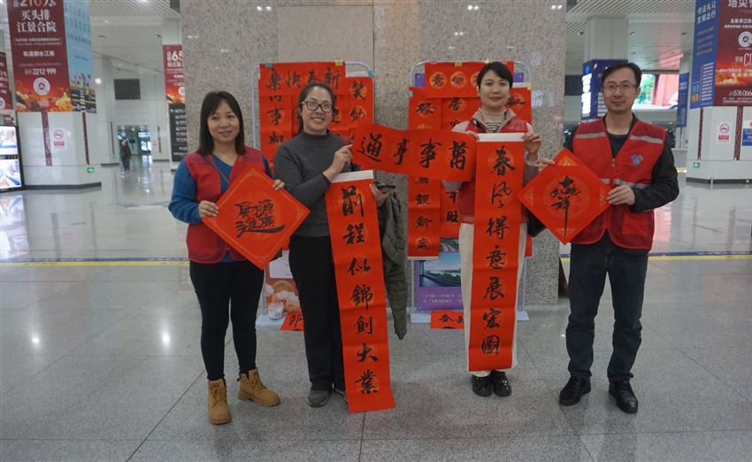 1月23日上午,軌道地產建筑公司黨支部與南湖街道屯里社區(qū)黨總支攜手,南寧火車東站南廣場開展一場別開生面的送春聯(lián)、贈福字活動。社區(qū)黨員與企業(yè)黨員志愿者積極參與,為奔波在春運途中的人們送去滿滿溫暖與新春祝福。